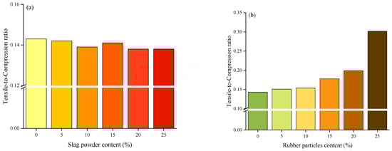 - The use of micro-slag powder in appropriate amounts can enhance the mechanical properties of silicate cement mortar. At 20% slag powder content, the compressive strength peaks at 58.5 MPa, which is 15.8% higher than the control sample without slag powder. As the slag powder content increases from 0% to 20%, the flexural strength of the modified mortar test blocks rises from 7.2 MPa to 8.1 MPa. While rubber particles (1–3 mm in size) reduce the compressive and tensile strengths of the mortar, they increase the tensile-to-compressive strength ratio. At a rubber content of 25%, the strength drops to just 8.6 MPa. The tensile strength decreases from 7.2 MPa to 2.6 MPa as the rubber particle content increases from 0% to 25%.