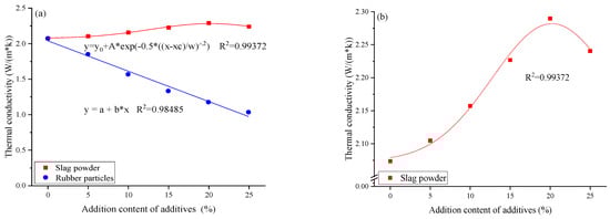 - Adding slag powder also enhances the thermal conductivity of the mortar, with the thermal conductivity being closely related to the volume fraction of fine slag powder (optimal at 15–25%). Increasing the slag powder content from 0% to 20% raises the thermal conductivity of the mortar from 2.07 to 2.29, a 10.4% increase. In contrast, rubber particles (1–3 mm in diameter) reduce the thermal conductivity of the mortar, with greater amounts leading to lower conductivity. The thermal conductivity of mortars containing rubber particles steadily declines from 2.0734 to 1.0313.