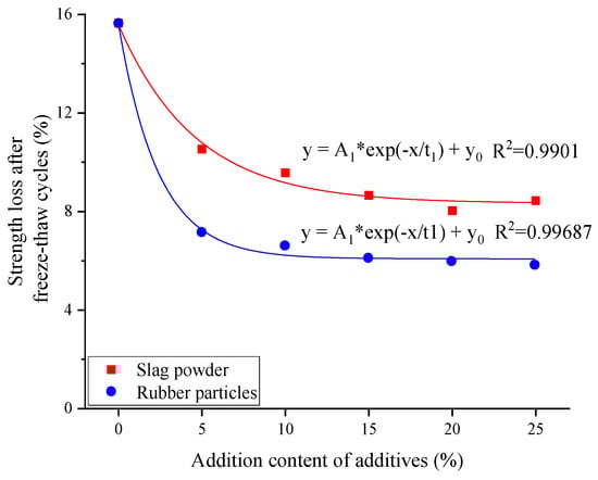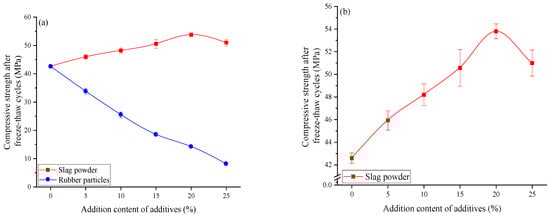 - As the slag powder content increases from 0% to 25%, the strength loss decreases from 15.64% to 8.44%, while the strength loss of rubber particle mortar decreases from 15.64% to 5.81%. Both slag powder and rubber particles contribute positively to the freeze–thaw resistance of mortar.