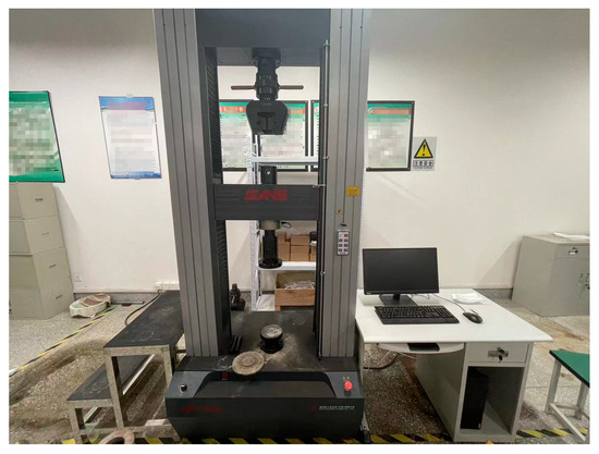All tests in this paper were quasi-static axial compression tests. The test instrument used was an Electromechanical Universal Testing Machine produced by MTS Systems (China) Co., Ltd. (Eden Prairie, MN, USA) (in Figure 2). The model of the experimental machine was CMT5305 and the maximum loading value was 100 KN.