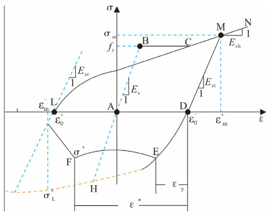 In this study, the reinforcement constitutive simulation developed by Fang Zihu of Shenzhen University was employed [24]. The subroutine of the reinforcement hysteresis model written by the Professor can simulate the degradation of structural strength and stiffness caused by the bond-slip between reinforcement and concrete under cyclic load. Figure 12 shows the reinforcement hysteresis model.