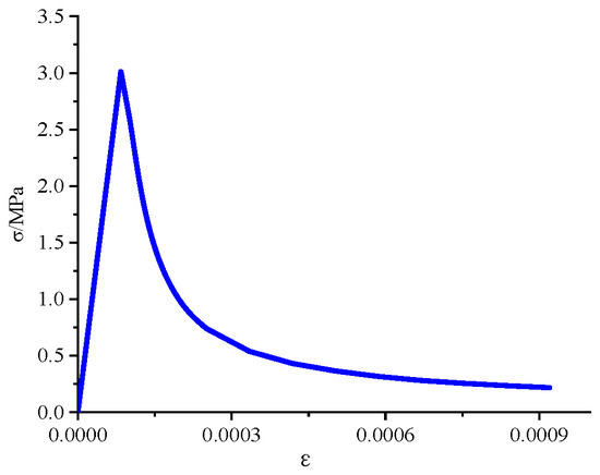 The tensile constitutive model for concrete is adopted from the GB50010-2010 [26], which provides the uniaxial tensile stress–strain relationship curve for concrete. The calculation of the constitutive relationship is shown in Figure 14.