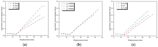 Equivalent viscous damping coefficient: (a) thickness of steel plate; (b) strength of grout material; (c) reinforcement range.