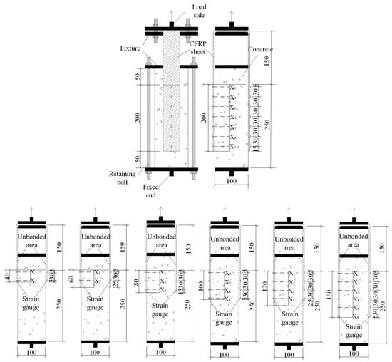 - Li, P.; Zhao, Y.; Wu, Y.; Lin, J. Effect of defects in adhesive layer on the interfacial bond behaviors of externally bonded CFRP-to-concrete joints. Eng. Struct. 2023, 278, 115495. [Google Scholar] [CrossRef]