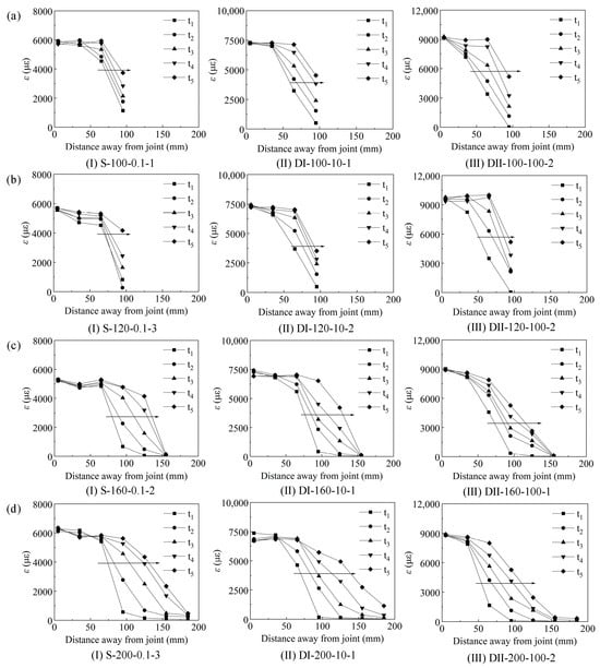 - The distribution trend of CFRP strain is consistent under different loading rates. With an increase in the strain rate, the maximum strain value of CFRP increases by about 70%, but the strain transfer range decreases.