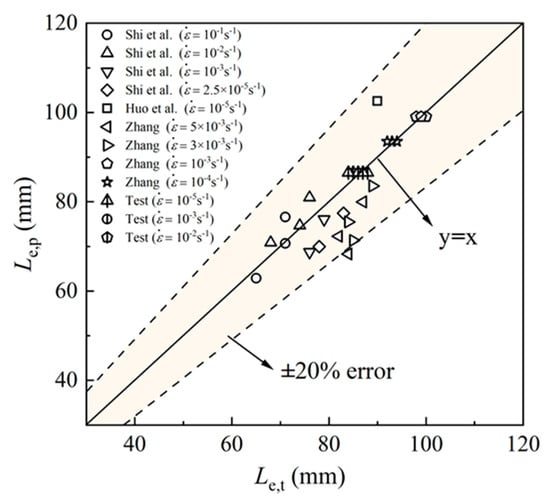 - Li, D.; Du, X.; Jin, L. Theoretical prediction method for nominal tensile strength of ordinary concrete considering strain rate effect and size effect. Build. Struct. 2021, 51, 122–128. (In Chinese) [Google Scholar]