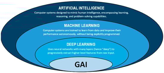 On the other hand, GAI models can be categorized into two major groups: open-source models (or open-weight models) and closed-source models []. Open-source models are free and available for anyone to use, modify, and distribute. In the case of open-weight models, only the model’s parameters (the neural network weights) are modifiable, not the underlying code. Typically, closed-source models are larger and offer superior performance, but they limit customization and provide less control over the training data. However, there are now large open-source models with performance comparable to those of closed-source models []. The choice between an open-source (or open-weight) model and a closed-source model depends on the specific needs of its use, including budget, security requirements, and the need for customization and control over data and the model.