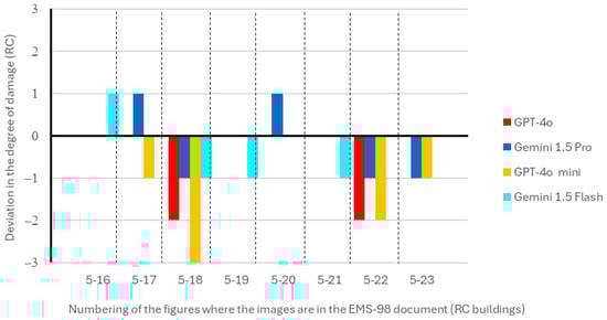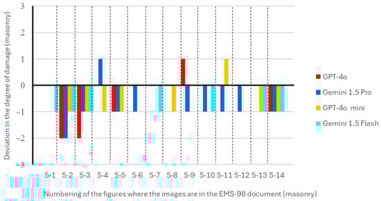 The assessment of the type of structural system present in the buildings identified in the photographs from the EMS-98 document, as well as the corresponding classification of the degree of damage, was obtained using different GAI models and the prompt provided in Appendix B. The models’ performances were compared using accuracy rates and mean error margins for damage classifications.
