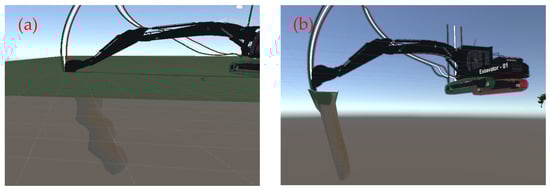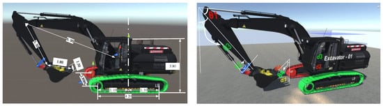 Based on the existing medium-sized excavator resource package, Snap Art HD Construction Site v1.0 (https://assetstore.unity.com/packages/templates/packs/snaps-art-hd-construction-site-150640 (accessed on 10 October 2024)), modifications and adjustments were implemented, as shown in Figure 6.