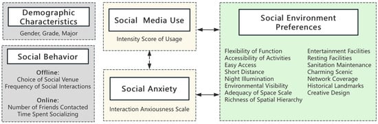 Wang, L.; Zhang, X.; Xie, A. Exploring the Link Between Social Media Engagement, Social Anxiety, and Environmental Preferences in University Students. Buildings 2024, 14, 3284. https://doi.org/10.3390/buildings14103284