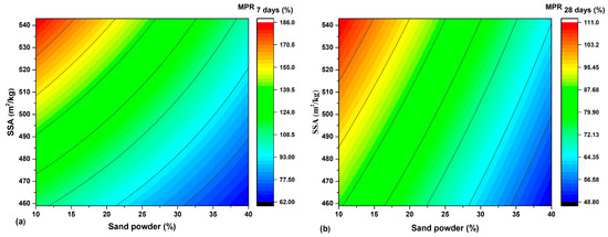 Iso-response curve of mechanical performance (a) at 7 days and (b) 28 days.