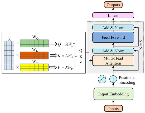 - Step 5: Output layer. The final output of the encoder passes through a fully connected layer (linear) that maps the high-dimensional features to the final output predictions [82,83].In the formula, H[−1] denotes the hidden representation of the last position of the transformer encoder output sequence. Wfc and bfc are the weights and biases of the fully connected layer.
