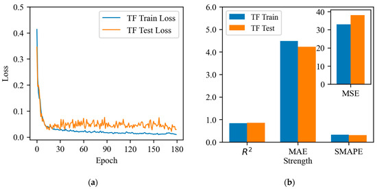 In this study, the TF model employs solely the encoder component for forecasting the compressive strength of fly ash-based concrete. The TF model’s algorithmic flow is illustrated in Figure 5.