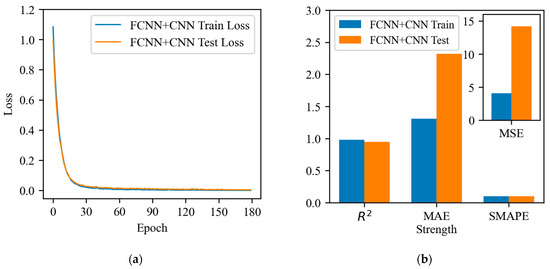 FCNN model: (a) loss function curve; (b) evaluation metrics.