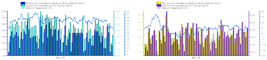 Production logs were collected, organized, and recorded for further analysis. Figure 3, Figure 4, Figure 5 and Figure 6 present the energy consumption data for asphalt mixture production during different time periods across various seasons.