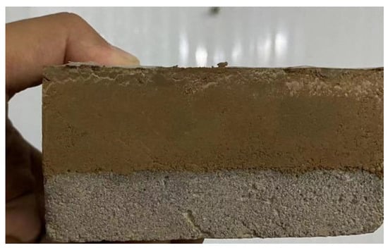 Finally, the concrete sample was placed in the mold, and the soil sample was compacted using the layered compaction method to create a concrete–soil interface sample with a height of 50 mm and a width of 100 mm (Figure 3). Both the concrete and soil samples were 25 mm in height, with the interface aligned with the upper and lower shear-box interfaces. The sample was then wrapped with cling film and placed in a quick freezer for 24 h. After demolding, it was wrapped with cling film and stored in a constant temperature chamber at the target temperature for 24 h in preparation for testing.