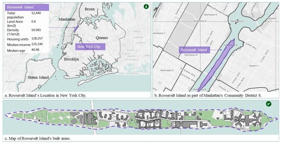 Socially, they envisioned a mixture of middle- and low-income residents, with a more significant proportion of multi-bedroom apartments for families with children than was typical of NYC, balancing the mix with apartments for singles and older adults to create “a multi-mix community in every sense” [21]. As a residential neighborhood, RI was defined as part of Manhattan community district 8, the Upper East Side, while enabling a mixed-race mixed-income community. At this stage, the island’s population was primarily younger than 65 and had middle-moderate or low income; 5% of the households were occupied by older adults (aged 65–85).