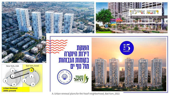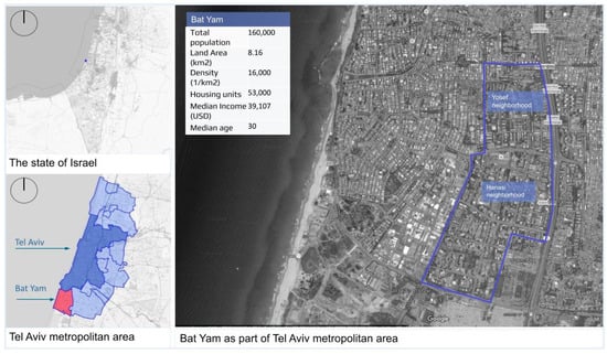 Conversely, Bat Yam, located within the Tel Aviv metropolitan area (Figure 2), has undergone significant urban renewal, driven by Israel’s current renewal policies that encourage developers to upgrade aging buildings. While these policies have improved living conditions, they have also led to substantial redevelopment that has transformed the neighborhood.