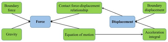 - For each contact, the force–displacement law is used to update the forces acting on the particles and the wall at that contact.