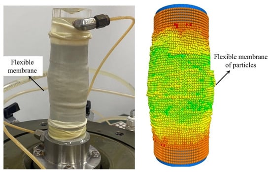 - Li, Z.; Chow, J.K.; Li, J.; Tai, P.; Zhou, Z. Modeling of flexible membrane boundary using discrete element method for drained/undrained triaxial test. Comput. Geotech. 2022, 145, 104687. [Google Scholar] [CrossRef]