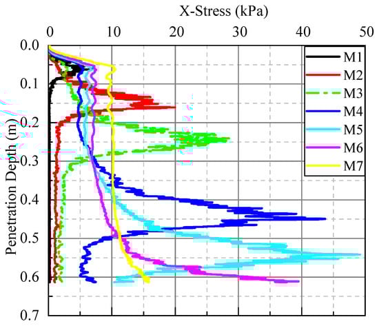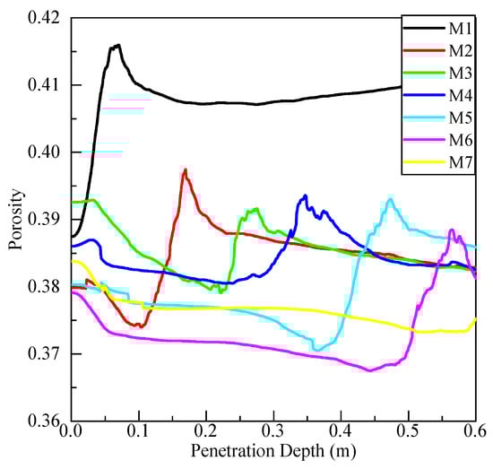 4.3. Distribution of Stress and Porosity at Various Depths during Penetration