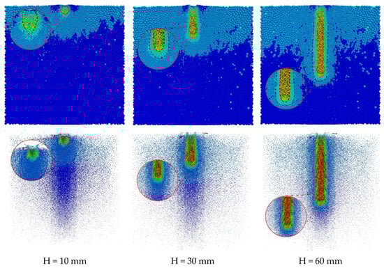 - Based on the FEM–DEM coupling method and from a mesoscopic viewpoint, this paper deeply analyzes how the pile disturbs the surrounding foundation soil during the penetration process. By integrating FEM and DEM, we conducted a detailed study on the stress, porosity, and particle motion characteristics of the soil around the pile during penetration, uncovering the extent and mechanisms of how pile penetration affects the surrounding soil. The study shows that the pile’s disturbance to the foundation soil during penetration is primarily focused around the pile sides and tip. With increasing penetration depth, the distribution of side friction evolves, and the soil’s stress and porosity undergo significant adjustments. The results of this study offer valuable references for assessing the performance of pile bearing capacity and the mechanical behavior of surrounding soil, and have certain guiding significance for optimizing pile design and for the enhancement or reduction of side friction during construction.