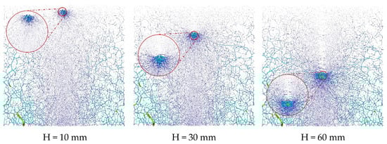 - In the other regions, the particle sizes are increased to decrease the overall number of particles in the discrete element model;