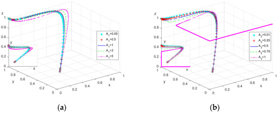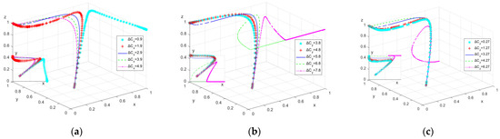 Firstly, to analyze the impact of changes in safety investment on the evolutionary game process and outcomes, is assigned the values , respectively; is assigned the values , respectively; and is assigned the values , respectively. The simulation results are shown in Figure 2.