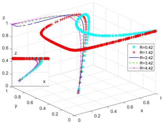 Case II: When , , is the stable strategy point of the system.