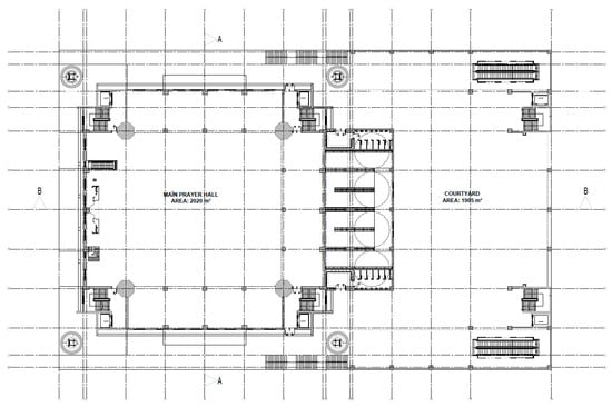 The Köyceğiz Campus Masjid is a three-floor complex being built in the Meram district of Konya, on a hill overlooking the city, on an area of 4500 m2. With a capacity of 15,000 people, it is the largest masjid in the city and can be seen from all over. The structure is a blend of Seljuk, Ottoman, and Modern architecture. Figure 1, Figure 2 and Figure 3 show the plans and sections of the masjid.