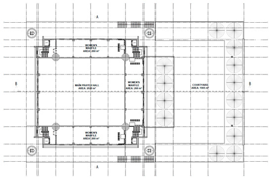 There is a women’s mahfil, consisting of three sections, in the building. Each section occupies an area of 260 m2 and they are connected to each other through circulation sections. It has a total area of 780 m2. The F floor is designed to surround the ground floor prayer hall, except for the mihrab facade.
