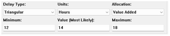- The operation time for the other processes is estimated by the field engineer for the most probable time, the most pessimistic time, and the most optimistic time and processed into a triangular distribution (TRIA), as shown in Figure 4 (taking the bottom web reinforcement binding as an example).