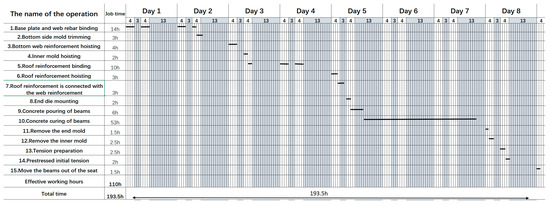 The operation time of each process in the production of box girders.