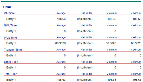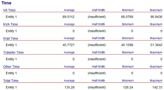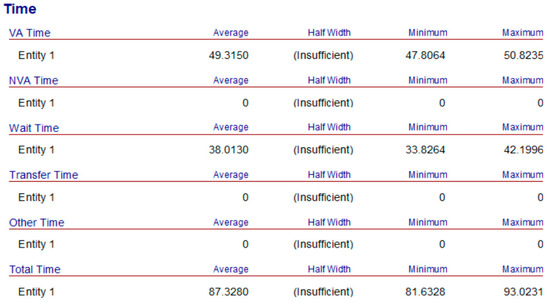 Figure 6 shows the output of the Arena 14.0 simulation model obtained by inputting the operating time and production rules of each process in Table 2 into the Arena simulation model and setting the number of entities to 1.