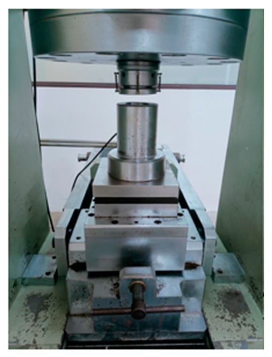 The RMT-301 testing machine with a capacity of 3000 kN was used to conduct the direct shear test for the specimens, shown in Figure 1. Shear loads were applied to the specimens using two shearing boxes that covered the top and bottom surfaces. The other rolling plates were designed to eliminate the friction caused by the axial compression. All the specimens were cast with a size of 150 × 150 × 150 mm3. The test setup configuration is illustrated in Figure 2a.