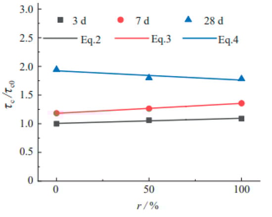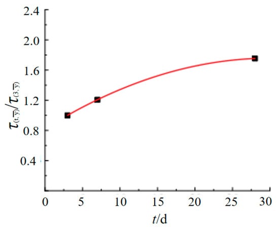 where is the average shear strength of different replacement ratios, is the average shear strength of different replacement ratios at ages of 3 days, and t is the curing age.