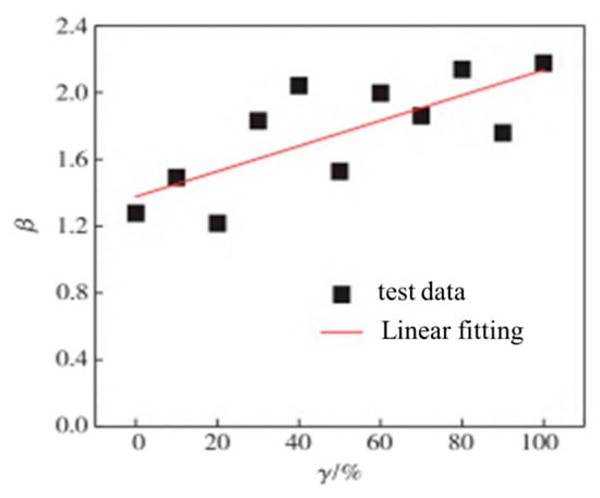 To reveal the change laws of the energy parameters during the deformation process, the index β of energy dissipation was introduced to quantify the failure process, utilizing the following equation: