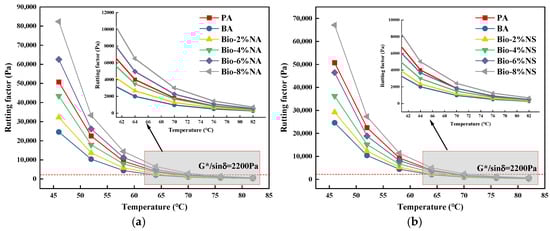 - The incorporation of NA and NS improved the temperature sensitivity, high-temperature characteristics, and anti-aging capability of BA. At −12 °C, the S and m indexes display that incorporating NA and NS will negatively affect the low-temperature capability of BA.
