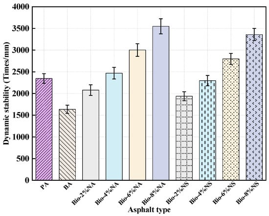 - Combining the results of the high- and low-temperature capability of NMBA, an NA content between 4 and 6% or an NS content between 6 and 8% can realize the enhancement of BA’s high-temperature and anti-aging capability, and the low-temperature capability is better than that of PA. Through the adjustment of the content of nanomaterials, the performance of BA can be adjustable and designable.