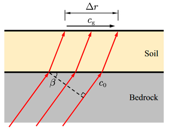 First, the physical meaning of the apparent surface velocity c g is examined. As shown in Figure 2, the apparent surface velocity at a local site is determined by the propagation velocity of seismic waves in the bedrock, that is, the group velocity c 0 and the incident β .