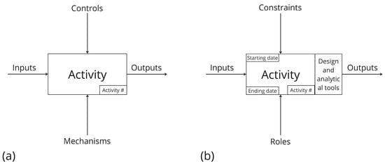 (a) Structure of IDEF0. (b) Customized IDEF0 structure for this study.