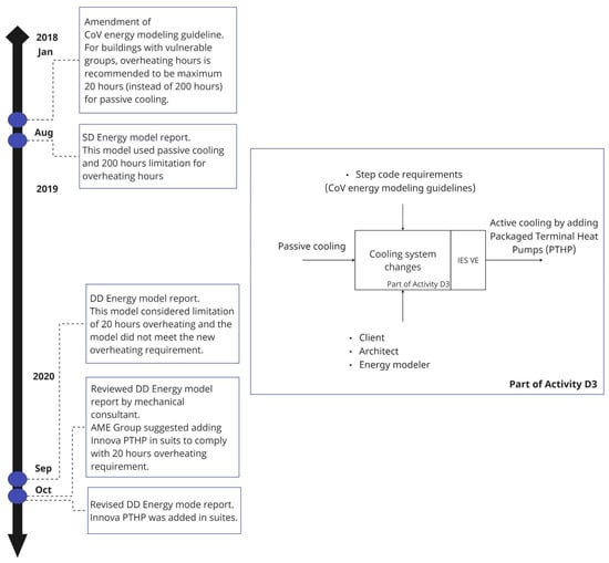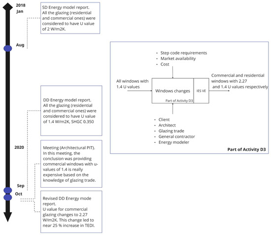 For document analysis, researchers carefully analyzed project meeting minutes, design drawings and energy reports. In their review of project meeting minutes, their focus was on pinpointing the decisions made, recording the decision dates, and identifying the roles of the individuals involved in making these decisions. Similarly, they conducted a detailed review of design progress drawings, aiming to uncover any changes made during the design phase, along with their respective dates. Additionally, the researchers conducted a comparative analysis of the inputs and outputs within energy reports to detect alterations and discern the design decisions that informed each report.