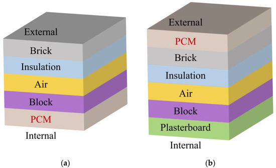 The PCM in wall construction: (a) internally positioned PCM, (b) externally positioned PCM.
