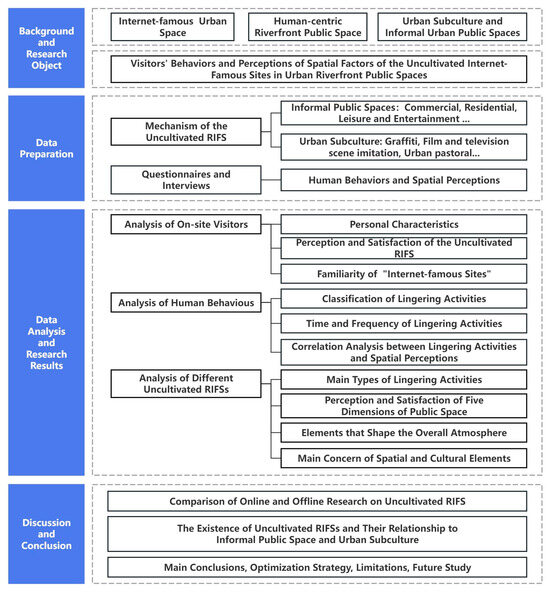 The research aim is to continue the research based on the above study of Huang et al., especially focusing on uncultivated RIFSs. From the perspective of onsite visitors, this study explores human behaviors and perceptions of this type of space, comparing it with the perceptions of social media users online, in order to provide optimization and improvement strategies for riverside public spaces in the future.