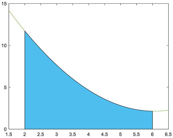 Because the probability density function requires that the area enclosed by the function and the x-axis is 1, it is necessary to normalize the fitted Gaussian function, which requires processing the Gaussian function and calculating the definite integral on the interval . Figure 7 shows the geometric meaning of the definite integral of the Gaussian function on the interval (as shown in the blue part of the Figure 8).