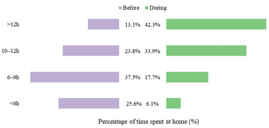 Percentage of time spent at home before and during the COVID-19 outbreak.