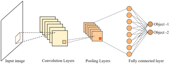 In DL-based CV methods, a convolutional neural network (CNN) that mimics the animal visual system is prominently used for analyzing digital images [23]. CNNs with different architectures have emerged, such as VGG [1], AlexNet [11,17,23], GoogLeNet [16], ResNet [16], and UNet [24,25,26]. All the aforementioned architectures consist of three basic layers: (a) convolution layer, (b) pooling layer, and (c) fully connected layers, as shown in Figure 1 [27]. The convolution layer is used for image processing utilizing filtration and de-ionization. Secondly, the pooling layer performs the threshold-setting process by morphological processing and binarization. In the last stage, the stacked inter-connected layers use classifiers for the detection of crack types and properties [28]. CNN does not rely on expert-set thresholds, as it can train itself adaptively through a feed-forward backpropagation algorithm. Moreover, the algorithm can effectively capture the grid topology of images and distinguish many object categories. It is highly robust to image variations for feature extraction [25,29]. As shown in Figure 2, CNN-based DL algorithms can be either a two-stage detector or a single-stage detector [30]. Both these detectors consist of the following important stages: namely, (a) object localization, (b) classification, and (c) detection. In the first form, the specific object in the form of a video (or) image is pinpointed to a location called the region of interest (ROI), which separates the specific object from the entire image. In the second stage, the labeling of specific objects present in the image is performed, which is termed classification. In the third stage, the first two steps (i.e., localization and classification) are combined to determine and locate the multiple numbers of similar objects present in the source file [17]. As seen in Figure 2a, a two-stage object detector takes two steps to localize and classify the object. It first generates the ROI, i.e., the object-containing area, and it predicts bounding boxes (BBs) that better fit and classify the object. The prominent two-stage detectors are region-based convolutional neural networks (R-CNNs) [17], Fast R-CNN [17] and Faster R-CNN [31,32]. Though the use of two-stage detectors is accurate in extracting the required information from the source image, their processing speed is slow [33].