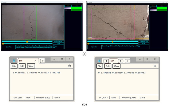 Crack count results. (a) Outputs on screen. (b) Outputs as text file.