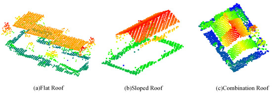 Figure 3c). These roofs represent common modern styles and provide a broad sample of typical roof types. Building codes require different height calculations for various building types. Therefore, the roof surface is extracted and segmented, providing the foundation for accurately calculating building heights.