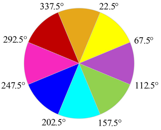 The slope refers to the angle between the tangent plane at a point on the surface and the horizontal plane. It is commonly expressed as a degree or a percentage of slope. In this paper, slopes are illustrated using degrees as an example. Slope direction refers to the steepest downslope direction at a given location on the surface. Slope direction can be visualized as the compass direction of the terrain, measured in degrees clockwise, ranging from 0° (due north) to 360° (also due north). Flat slopes have no direction, with their value designated as −1.